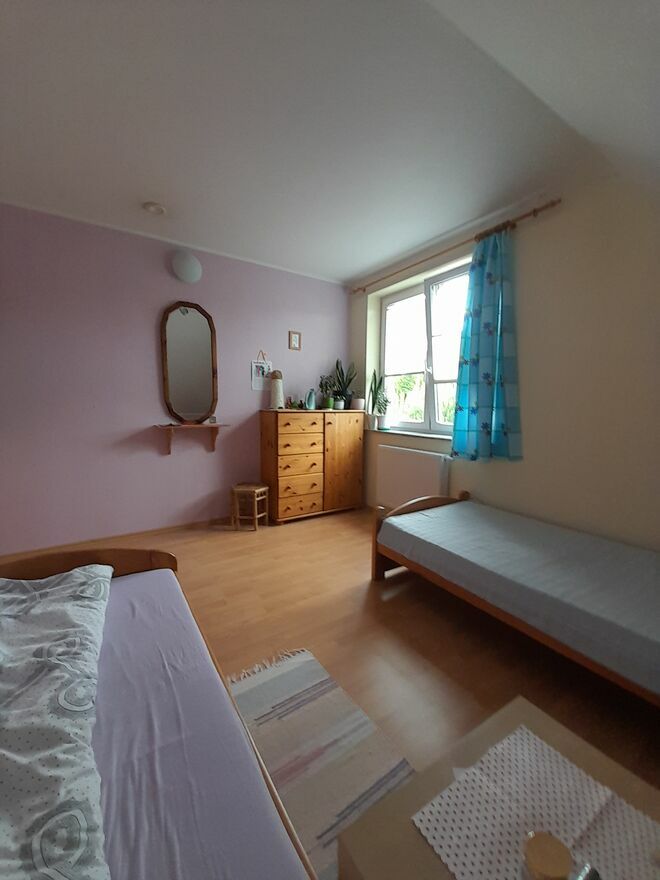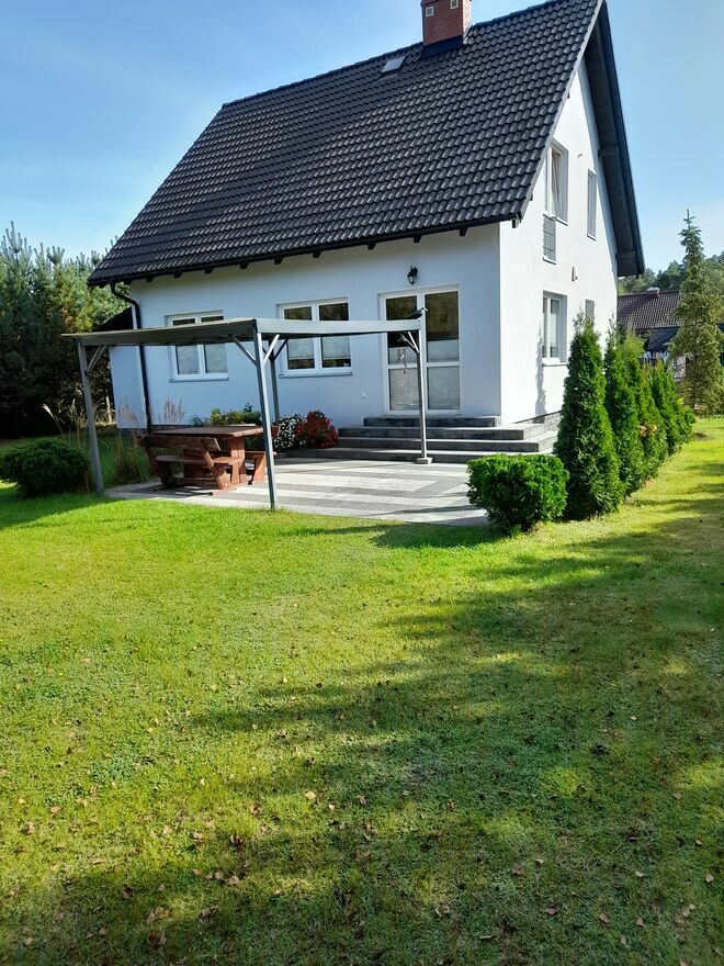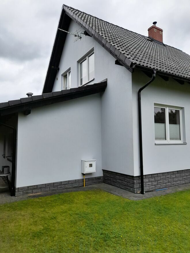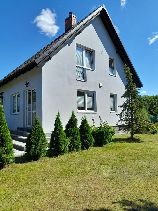 WSTĘP - Dom jest położony w Lizakach,gmina Kościerzyna. Ma świetną lokalizację, w ciągu kilkunastu minut można dojechać autem do Kościerzyny, jak i w przeciwną stronę, do centrum turystycznego Kaszub - wsi Wdzydze. Wdzydze i Lizaki są położone na obszarze Wdzydzkiego Parku Krajobrazowego. Wdzydze leżą nad dużym, atrakcyjnym dla turystów jeziorem Gołuń, szczególnie dla miłośników żeglarstwa i rajdów pieszych lub rowerowych po szlakach turystycznych. Lizaki, chociaż w mniejszej skali, również mają swoje atuty rekreacyjne i turystyczne. Piękne, czyste jezioro jest w okresie wakacyjnym dużą atrakcją dla amatorów kąpieli i sportów wodnych. Z mojej posesji można dojść do jeziora w ciągu kilku minut. Miłośnicy biegania, czy jazdy na rowerze, znajdą w otaczajacych wieś lasach odpowiednie szlaki turystyczne. Swojej ulubionej aktywności mogą się oddawać zbieracze grzybów i jagód. W okresie letnio-jesiennym, runa leśnego tutaj nie brakuje. CZĘŚĆ GŁÓWNA - Dom jest budynkiem wolnostojacym. Ma charakter całoroczny. Został posadowiony na działce budowlanej Działka jest ogrodzona metalową siatką, pokrytą zieloną siatką maskującą. Jest ładnie zagospodarowana. Na obrzeżach rosną 20-letnie sosny i świerki, regularnie przycinane. Oprócz nich rosną mniejsze drzewa, krzewy, kwiaty i krzaczki owocowe. Na obszarze działki usytuowane są: domek gospodarczy, wiatka na drewno kominkowe i zbiornik na LPG. W okresie 2017 -2019 budynek przeszedł renowację i modernizację, w tym termomodernizację. Została odnowiona i zakonserwowana elewacja domu i dach łącznie z podbitką. Zostala odnowiona część mieszkalna na parterze budunku. Wykonano docieplenie podłogi i położono panele. Założono nowe drzwi zewnętrzne. Posiadają one wysokie parametry izolacyjności termicznej i jednocześnie są antywłamaniowe. Docieplono poddasze garażu i wymieniono dotychczasową bramę garażową na termoizolacyjną, otwieraną na pilota. Budynek jest bardzo funkcjonalny. Świadczy o tym niżej opisany rozkład pomieszczeń. * Parter : wiatrołap, sień, pomieszczenie gospodarcze, piwniczka, o kilka stopni wyżej - zabudowany szafą na odzież przedpokój, mała łazienka, pokój , salon, kuchnia zabudowana stolarką meblową. W salonie jest umieszczony kominek. Z salonu jest wyjście na taras, gdzie znajdują się pergola i meble ogrodowe. * Piętro: duża łazienka, trzy sypialnie. * Poddasze zabezpieczone wełną mineralną. Możliwa jest adaptacja poddasza pod kątem pozyskania dodatkowej powierzchni. We wszystkich oknach domu założone są żaluzje. Budynek posiada system ogrzewania gazem LPG (instalacja zewnętrzna i wewnętrzna marki Gaspol, zbiornik marki Chemet, piec marki Viesmann). Zakup calego systemu sprawił, że koszty ogrzewania domu zostały ograniczone do wydatków na zakup gazu i rocznych oplat za przeglądy techniczne. Dom posiada również sprawne ogrzewanie kominkowe. W budynku jest instalacja alarmowa. Budynek jest podłączony do gminnej sieci wodociągowej, natomiast nie ma w Lizakach gminnej sieci kanalizacyjnej. W związku z tym, w projekcie budowlanym domu przewidziano rozwiązanie powszechnie na wsiach stosowane. PODSUMOWANIIE Z powyższego opisu wynika, że decyzja o zakupie domu na Kaszubach, a ściśle w Lizakach, jest dobrym rozwiązaniem i to pod wieloma względami, a mianowicie: komunikacyjnym, turystycznym, rekreacyjnym i, co najważniejsze, ekonomicznym. W czasach wysokich cen mieszkań, budowanych przez deweloperów, decyzja o zakupie domu w niedużej odległości od miasta, jest uzasadniona ekonomicznie. Cena mkw mojego domu, jest zdecydowanie niższa, aniżeli cena mkw mieszkania w mieście. Oferta jest adresowana głównie do osób z Kościerzyny i okolic. Jednak w związku z nowymi połączeniami komunikacyjnymi Kościerzyny z Trójmiastem, powstałymi w wyniku otwierania kolejnych odcinków Trasy Kaszubskiej, oferta może zainteresować również osoby planujące kupno wlasnego locum, pracujące Trójmieście. PolecamSprawdź zainteresowanie tym ogłoszeniem